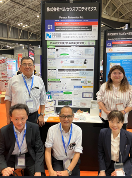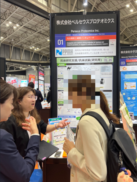さらに、当社は中小機構ブースエリアにおいて企業ブースを出展しております。企業ブースでは、抗体・試薬の新製品・新サービスのご紹介をしています。連日、多数の企業やアカデミア関係のお客様に当社ブースへ足を運んでいただいております。このような場は当社製品・サービスを利用いただく方々と直接お話ができる貴重な機会であり、今後の製品開発につながることを期待しています。