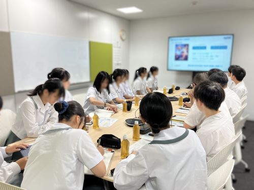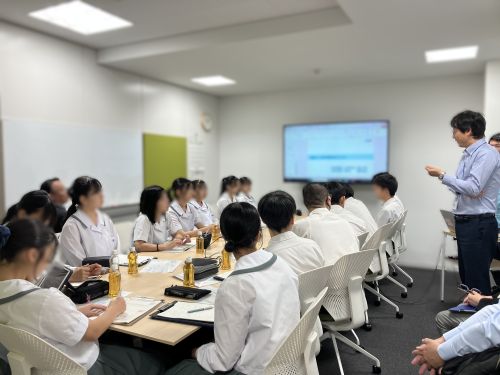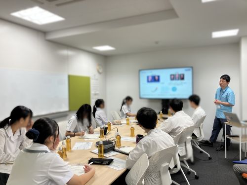 研修は1時間半という短い時間ではありましたが、当社研究員には抗体医薬品やAI創薬について、できる限り分かりやすく説明するようお願いしていました。高校生の皆さんが夢中になって聞き入っている姿がたいへん印象的でした。また、その後の質疑応答では、高校生ならではの斬新な質問を数多くいただき、対応した研究員にとっても自身の研究を見つめ直す良い時間になったのではないかと思います。